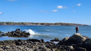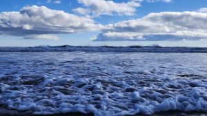 If you recall our wild ride home from Camden, the seas were quite choppy due to the hurricane that had meandered its way up the coast. By the time it reached our beaches, most of its fury was spent but we had seen predictions that the waves could reach heights of 8-10 feet. Never wanting to get caught in those conditions on a boat didn’t stop us from witnessing it from land. One of the perks of home schooling is that we can spontaneously decide to go to the beach any day– school books optional –and so a field trip ensued.
