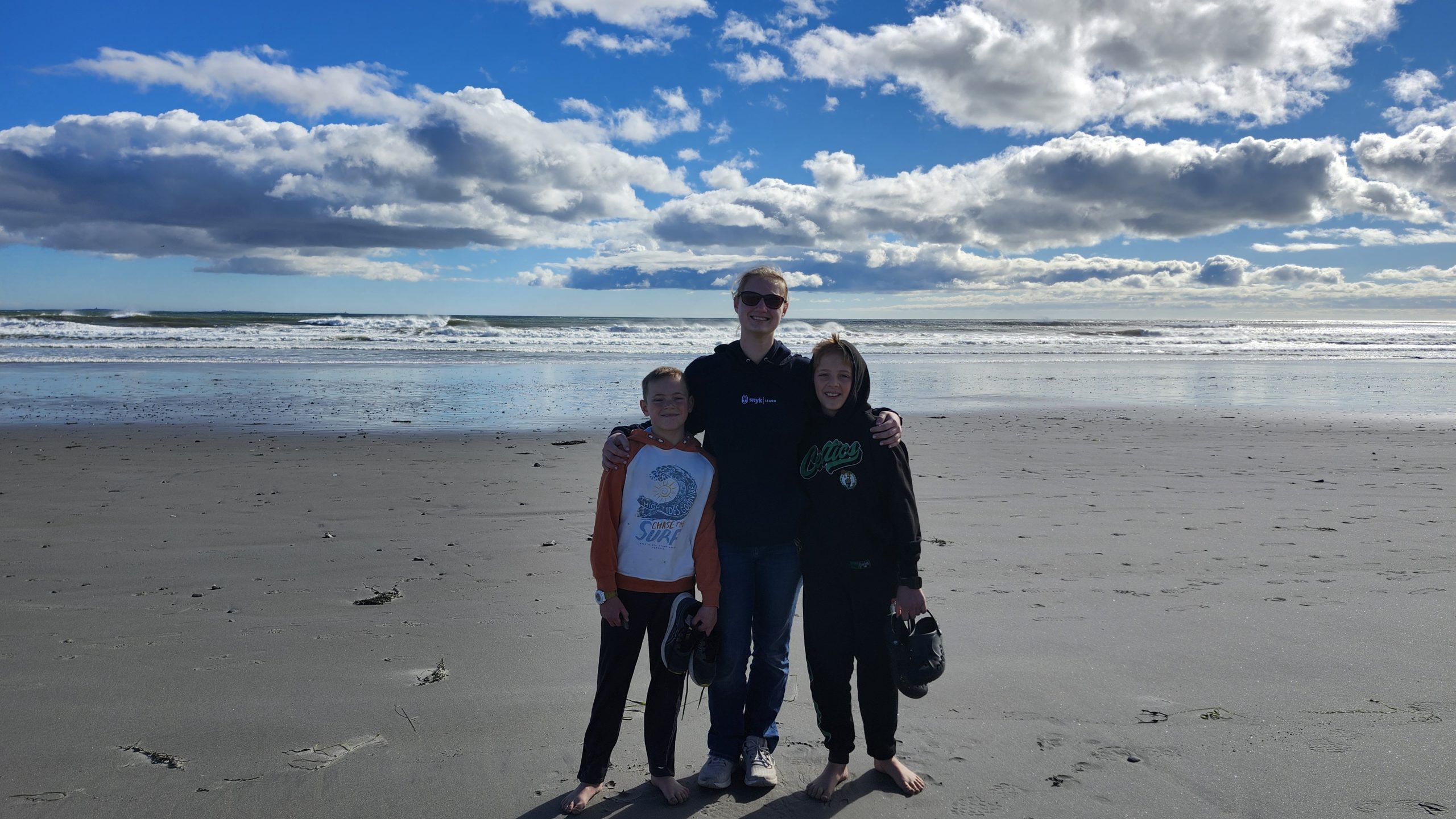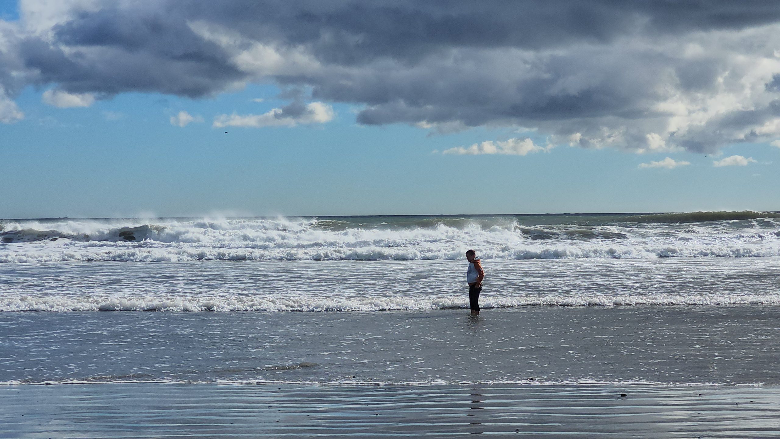 If you recall our wild ride home from Camden, the seas were quite choppy due to the hurricane that had meandered its way up the coast. By the time it reached our beaches, most of its fury was spent but we had seen predictions that the waves could reach heights of 8-10 feet. Never wanting to get caught in those conditions on a boat didn’t stop us from witnessing it from land. One of the perks of home schooling is that we can spontaneously decide to go to the beach any day– school books optional –and so a field trip ensued.
