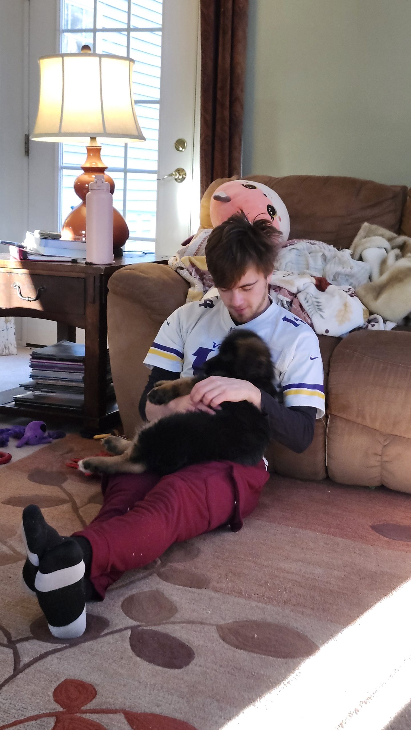Our lives, and laps, are full, which makes a great segue into Thanksgiving weekend. November 27, 2025 happened to be both Thanksgiving day and Jake’s 21st birthday, so it’s a good thing he wanted a full turkey dinner for his birthday supper. Once he got over the shock of there being a new puppy in the house (we hadn’t told him about her until he came home on break), I shocked him again with an amateur cake that definitely looked better as a real shoe than it did as an edible replica. Aside from food that may have had more heart than looks, the weekend was filled with the usual noise and banter and magic that can only come from eight people and a puppy living under the same roof.
